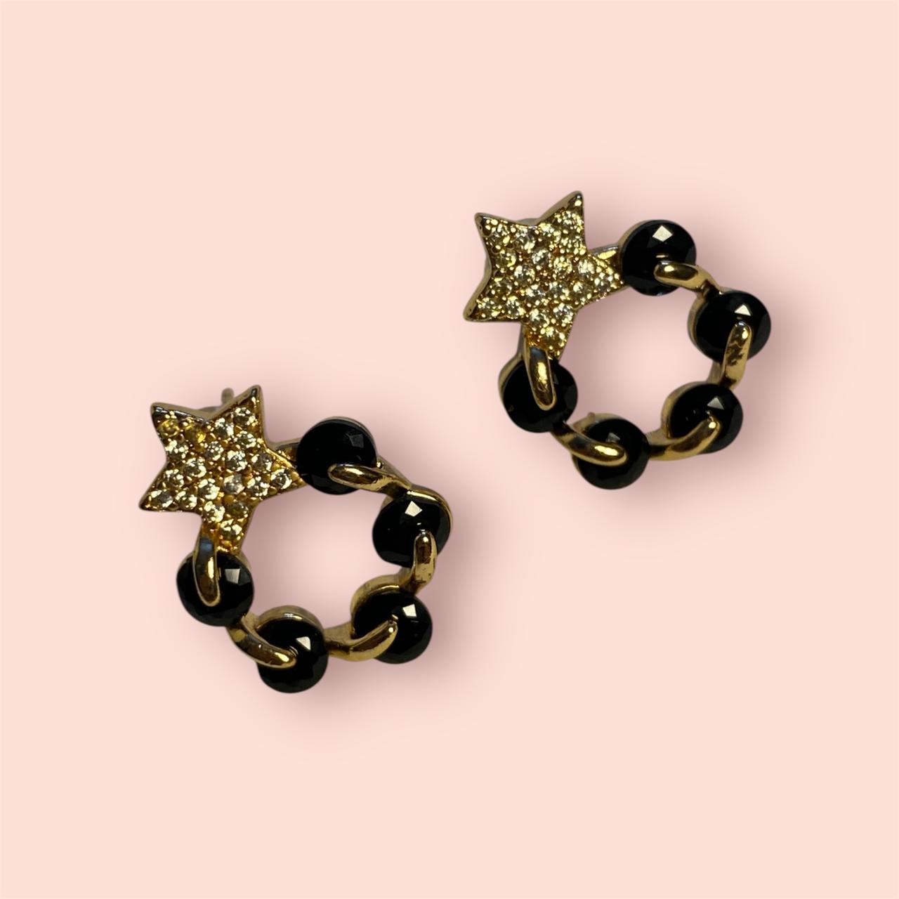 Shine bright with our stunning black and golden star-shaped studs adorned with sparkling stones. The perfect combination of elegance and sophistication, these studs feature intricate details and a striking color contrast.